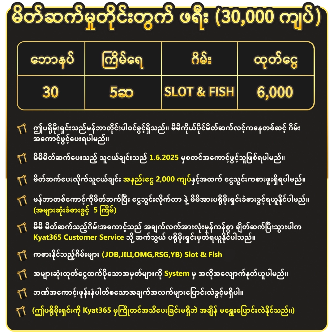 👉🏻  ဖရီး 30,000Ks ရယူရန္ ဤေနရာကိုႏွိပ္လိုက္ပါ။