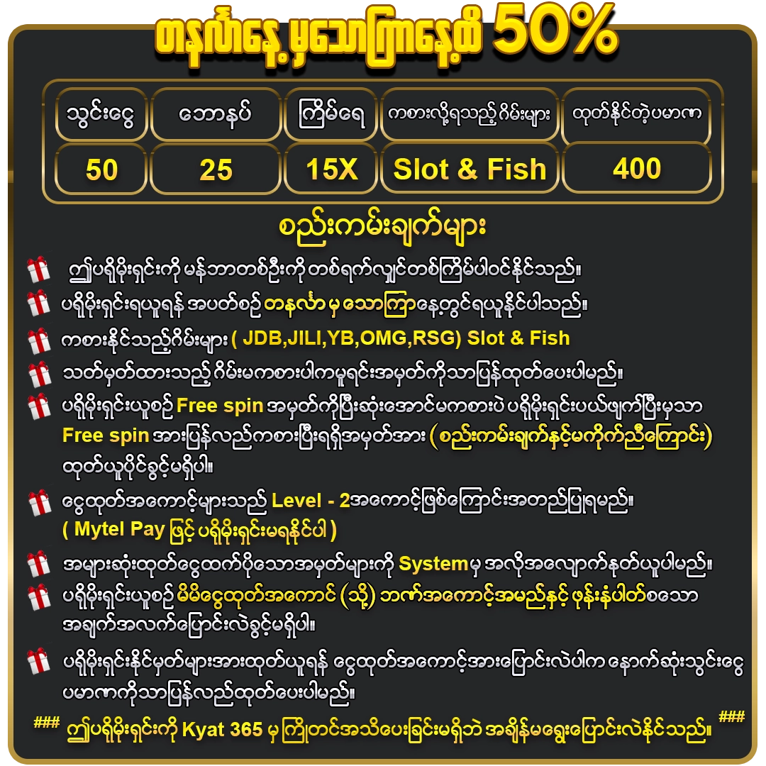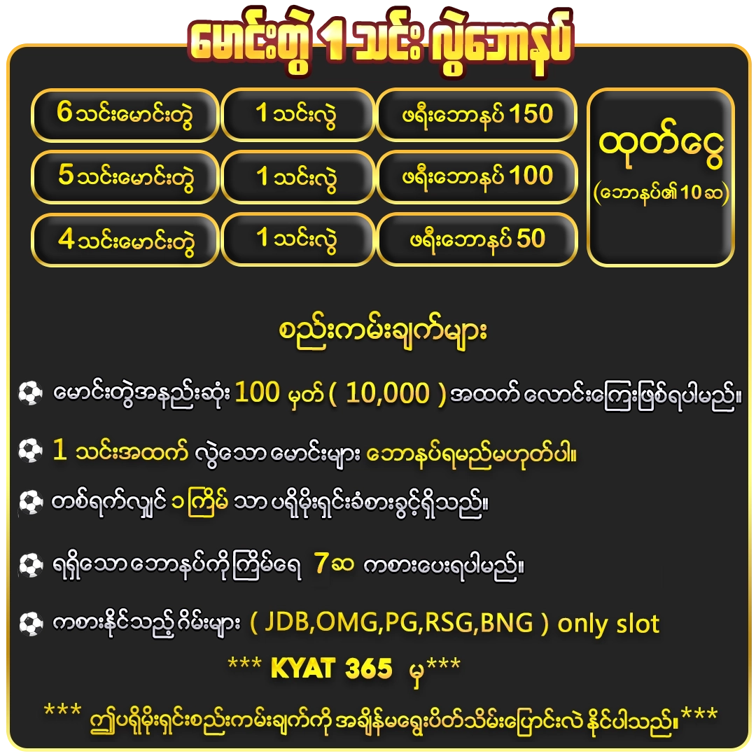 1.7.2025 မွစတင္အေကာင့္ဖြင့္သူတိုင္းကို ဖရီးလက္ေဆာင္ခံစားခြင့္ရွိသည္။