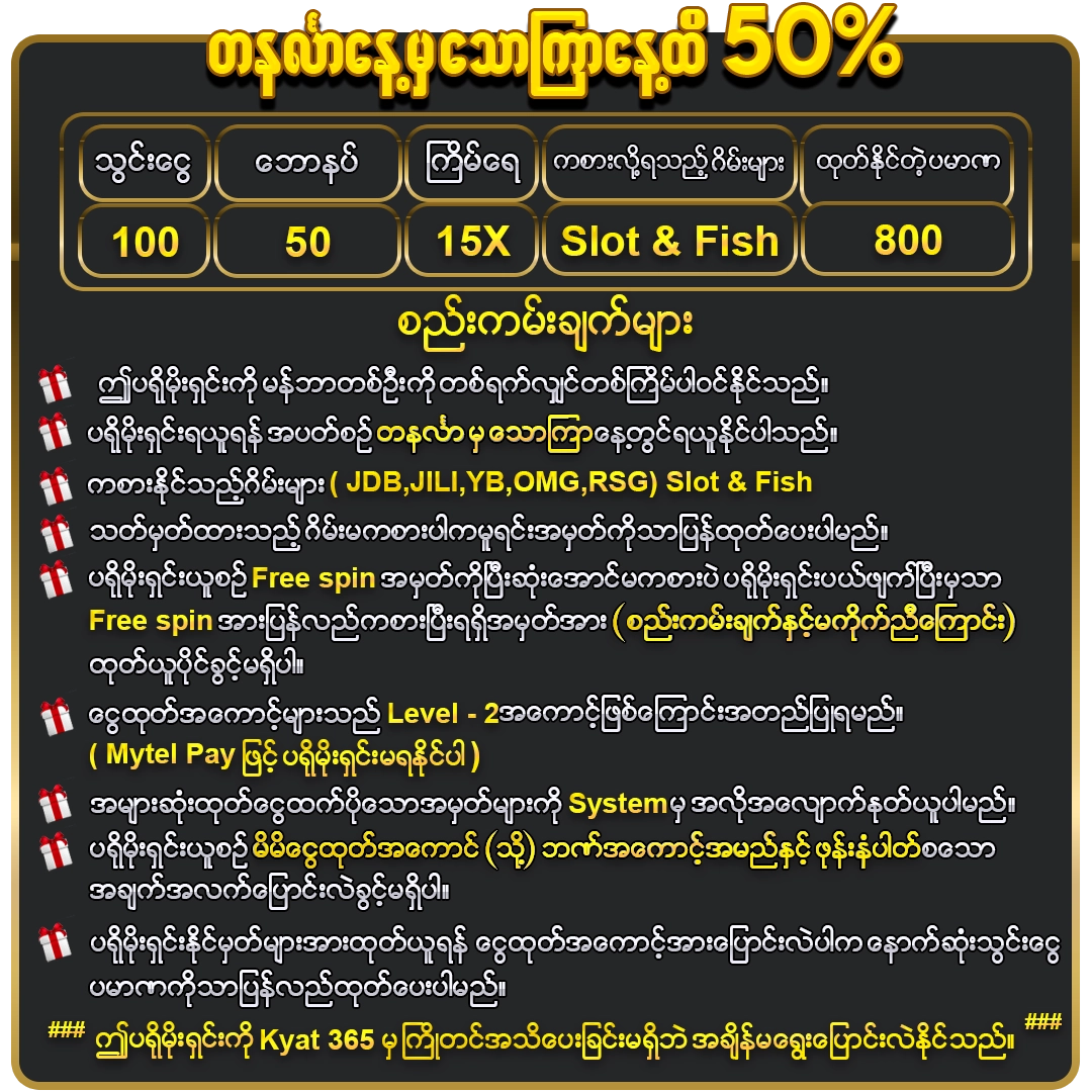 👉🏻 ဖရီး 15,000Ks ရယူရန္ ဤေနရာကိုႏွိပ္လိုက္ပါ။
